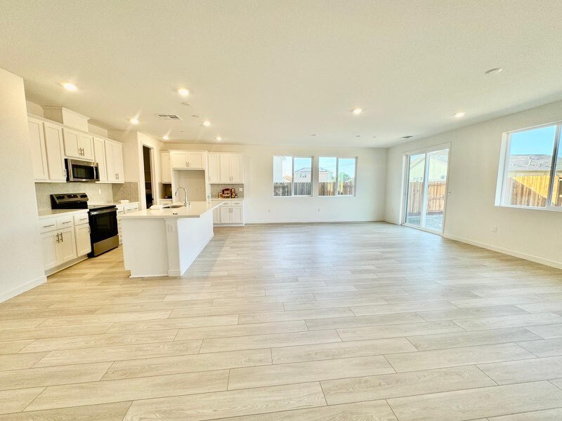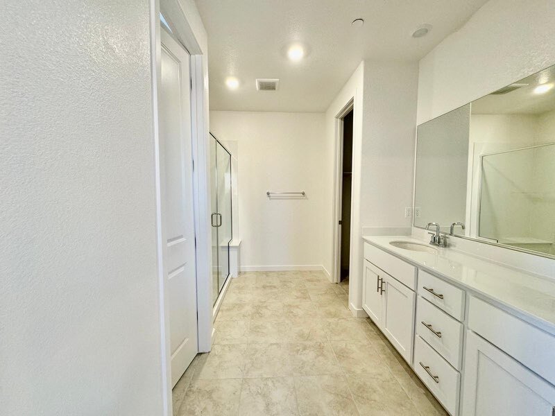 The main living area is bright and airy, featuring a spacious kitchen with a large island, plenty of storage, and modern appliances. The master suite includes a large walk-in closet and an en-suite bathroom with dual vanities, a soaking tub, and a walk-in shower. The additional bedrooms offer generous space and ample closet storage.