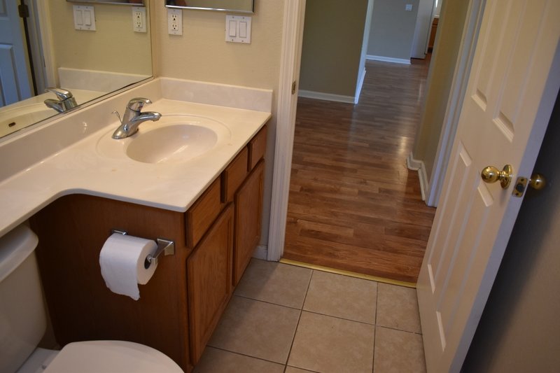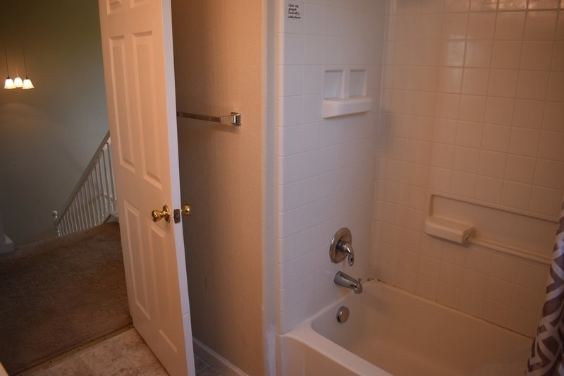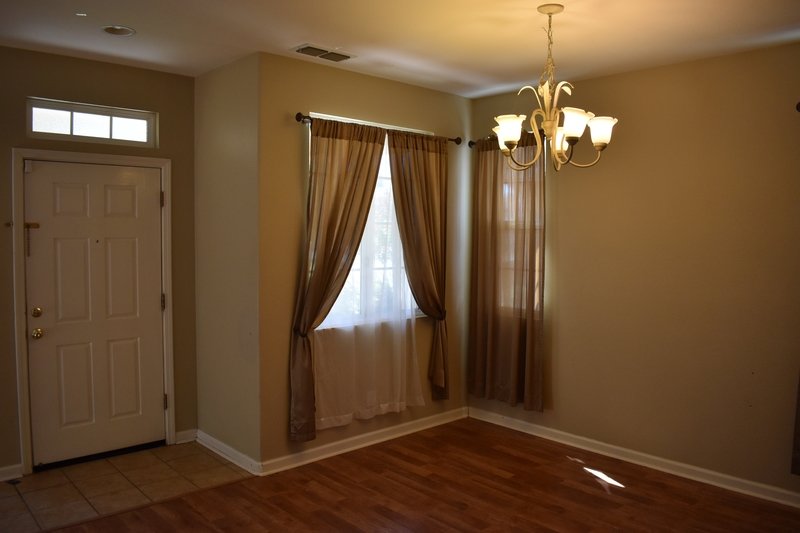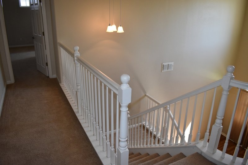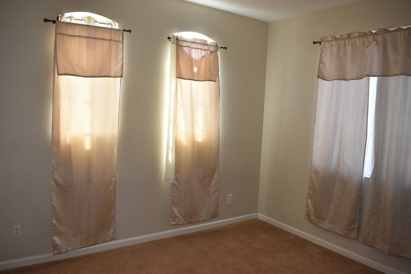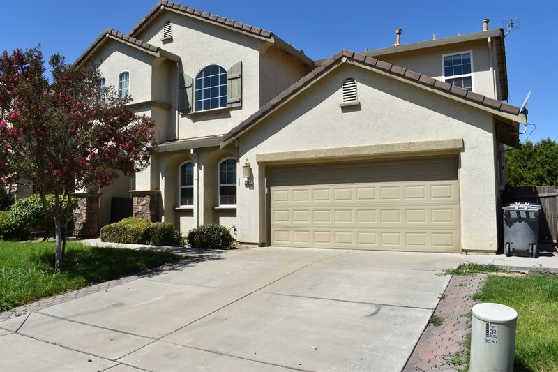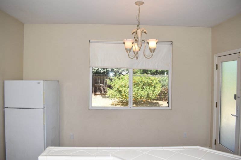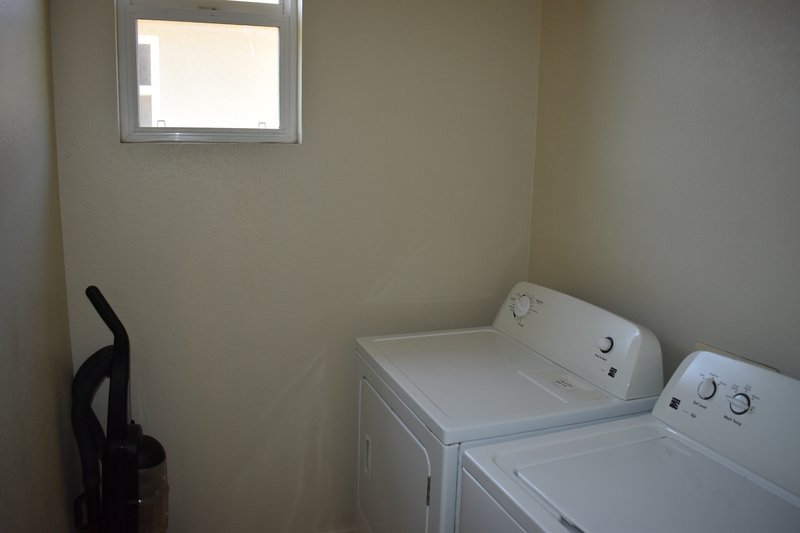 Available now. This house in North Merced features laminate flooring in the downstairs. The formal living room features vaulted ceilings. The kitchen features tile countertops with a gas cooktop, fridge included and pantry. One bedroom is located downstairs. The upstairs features carpet. The master bedroom features a walk in closet. The master bathroom features separate sinks, a tub and shower stall. The laundry room is located upstairs and features a washer and dryer. The backyard features a covered patio, concrete with fruit trees.