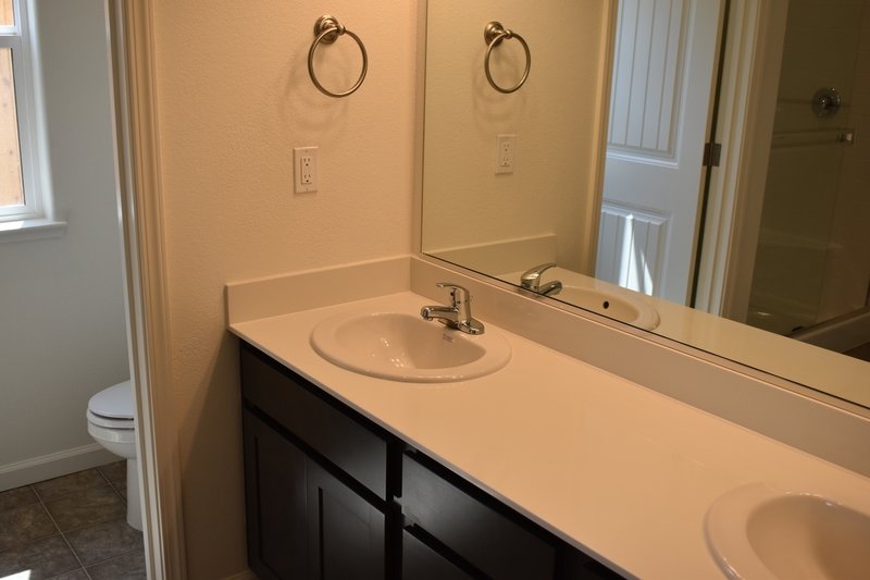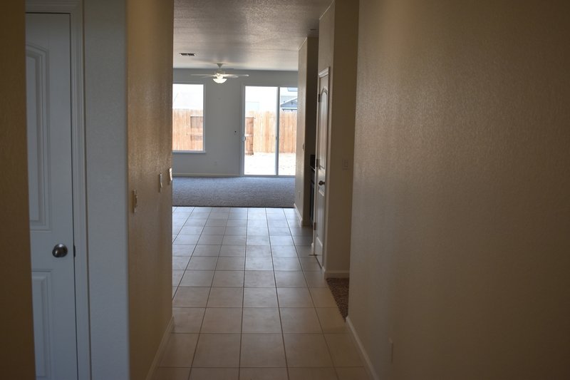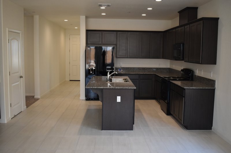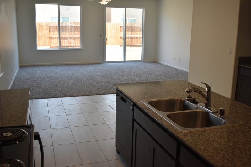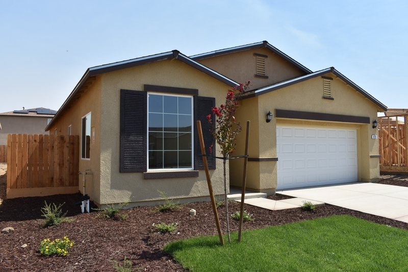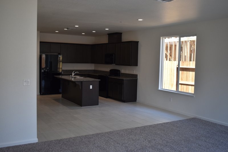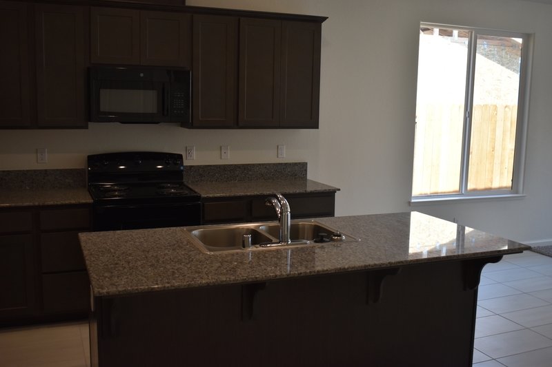 Available now. Brand new Stonefield home in Bellevue Ranch. This house features tile flooring in the entry, kitchen and dining area. The bathrooms and laundry room feature vinyl flooring. The kitchen features an island with granite countertops, plenty of cabinets, stainless steel appliances, electric cooktop with fridge included and pantry. The master bathroom features a slider door with backyard access, double sinks, and a shower stall. The master bedroom also features a walk in closet. The 2 bedrooms also features carpet. The laundry room features a washer and dryer with above cabinets. The backyard features dirt.